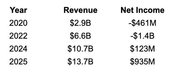Fast forward to today: DoorDash commands over 60% of the U.S. food delivery market, operates across 40+ countries, generated nearly $14 billion in revenue in 2025, and posted $935 million in GAAP net income, proving the economics actually work.
